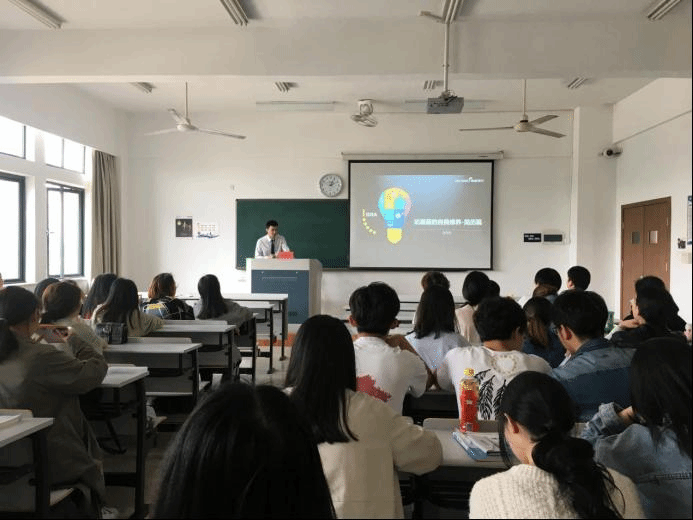 5月5日,泰隆银行台州分行人力资源部程俊鸣先生应邀来校,为9001cc金沙首页学生作“论面霸的自我修养——简历篇”专题讲座。9001cc金沙首页50多位学生参加,辅导员赵之遐主持讲座。