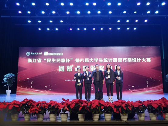 11月16日,第八届浙江省大学生统计调查方案设计大赛的决赛在浙江财经大学落下帷幕。在本次竞赛传统组角逐中,我校9001cc金沙首页工商管理17级余嘉璐、17财管张超群、17国贸沈祎祎、胡桂银组成的代表队,在李欠强和吴珊瑚两位老师的指导下获得二等奖。