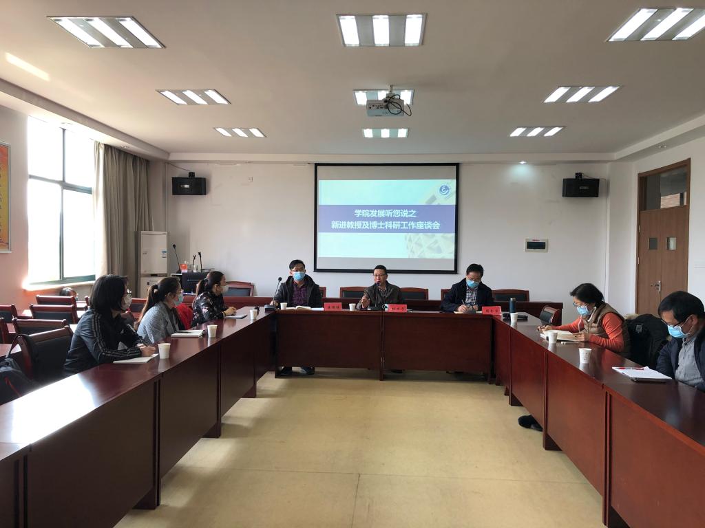 陈国栋副院长侧重介绍了学校及学院的有关科研政策,鼓励新进教授及博士积极努力开展科研工作,更好地为学院发展做贡献。与会新老师就个人科研方向、课题研究、团队合作、存在困惑、科研建议等进行互动交流,对学院发展建言献策。周全宝书记表示,学院党建经常性开展“学院发展听您说”活动,积极听取教职工有关学院工作的合理化建议,将尽力支持配合学院科研工作,竭尽所能为教师科研发展提供服务。