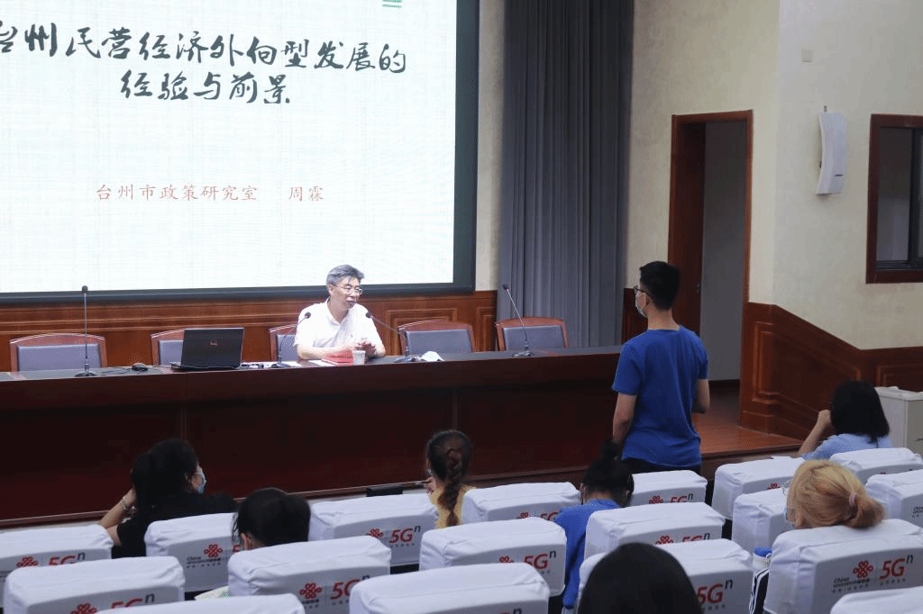 5月12日上午,台州市政策研究室副主任周霖给我院18级国际经济与贸易全体同学带来“台州民营经济外向型发展的经验与前景”分享会,会议于9001cc金沙首页506室召开,国际经济与贸易系副主任沈璟璟出席会议。