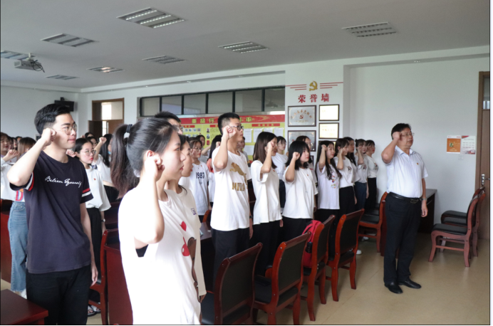 在党的生日来临之际,为增强党员党性修养,6月23日,9001cc金沙首页在“党员之家”开展了毕业生党员教育暨重温入党誓词活动。学院党总支书记周全宝、副书记鲍婷婷、学生党支部书记及党员代表参加。
