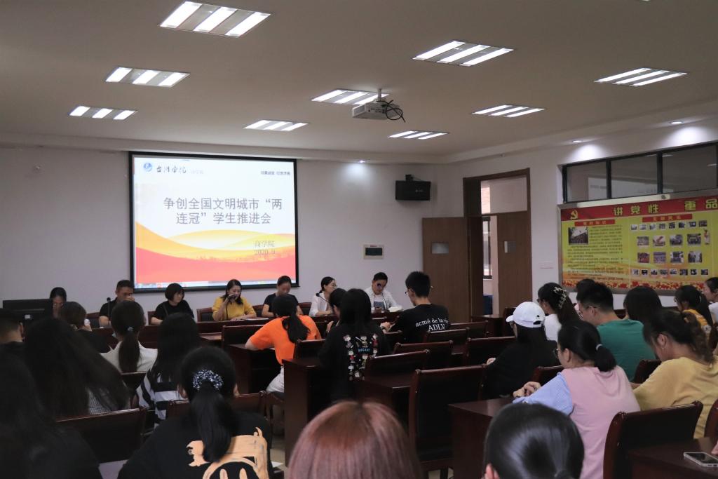 为进一步加强全国文明城市“两连冠”创建工作,同时为扎实推进、落实好新学期学院、学校工作部署会议精神,9月9日下午,9001cc金沙首页召开了争创全国文明城市“两连冠”学生推进会暨学生干部会议。学院党总支副书记鲍婷婷、全体辅导员、各班班长团支书、团学会等学生干部参加了会议。