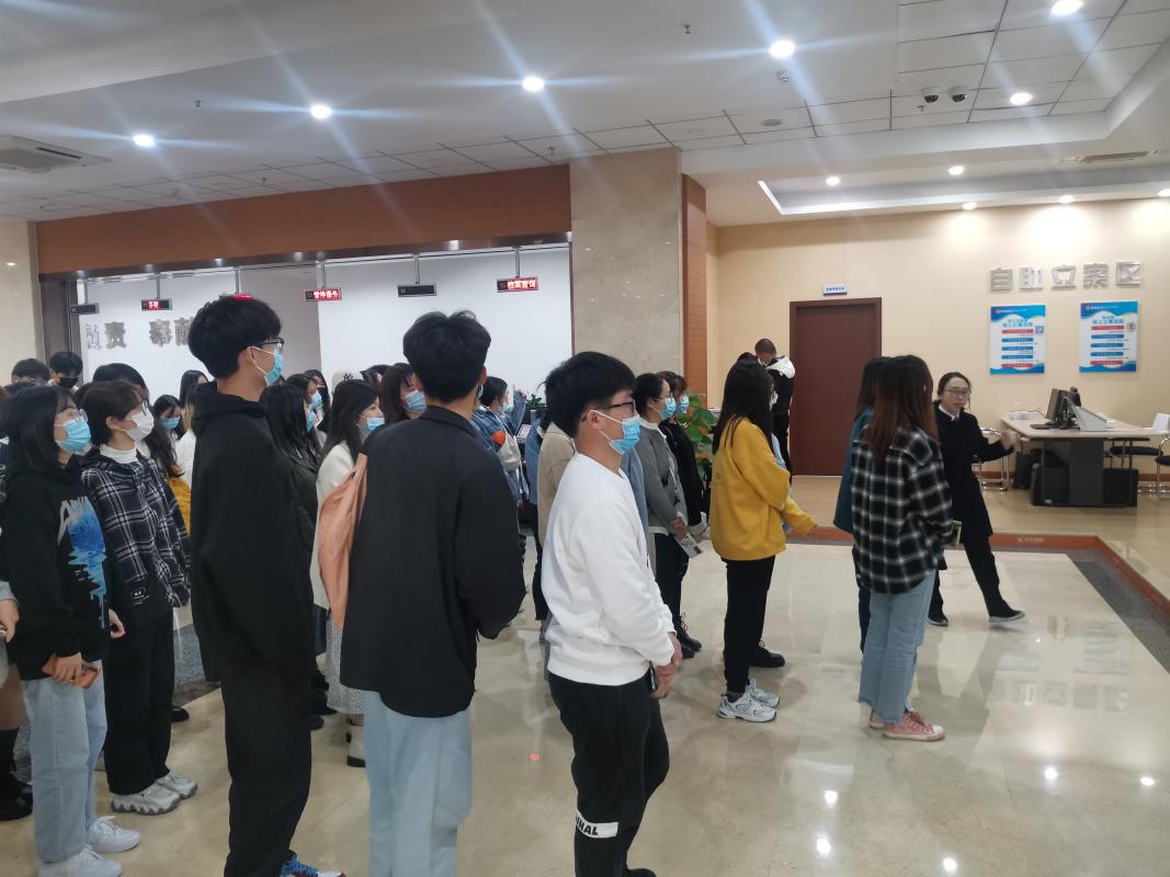 2021年4月15日,9001cc金沙首页2019级工商管理专业全体学生在韩秀平、毛晓燕老师的带领下,赴台州市椒江区人民法院参观旁听、考察学习。