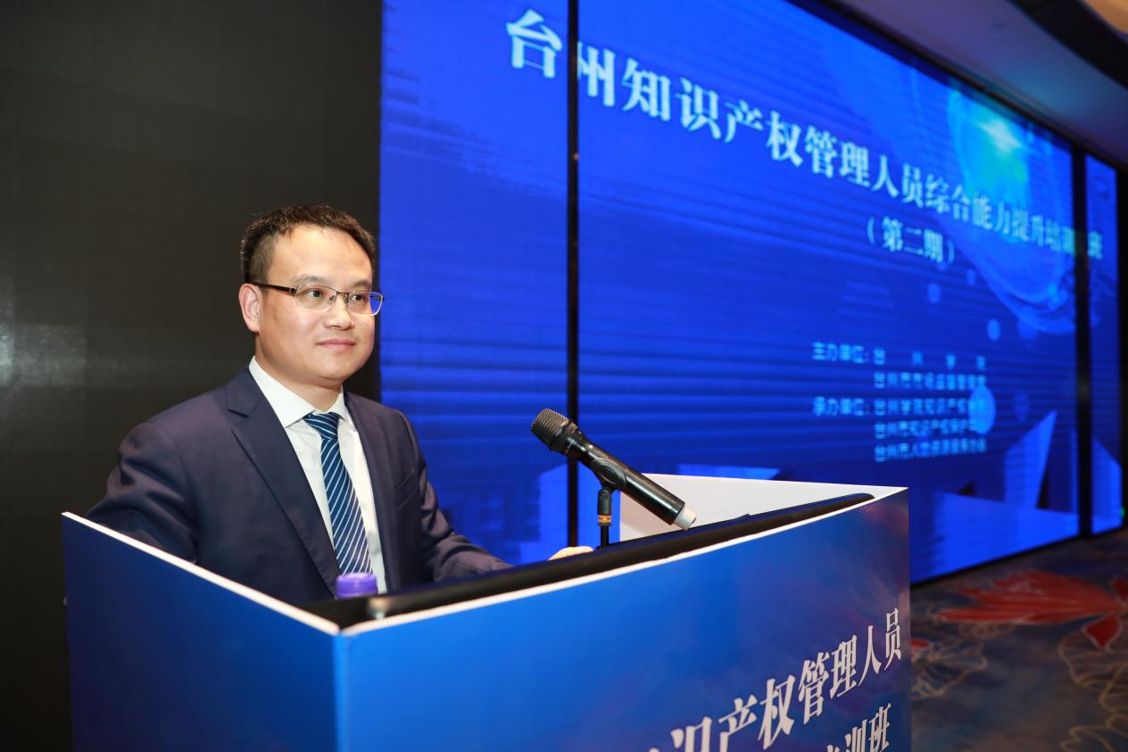 4月28-29日,台州市企业知识产权管理人员综合能力提升培训班在椒江香溢大酒店举行,来自台州高校、政府事业单位、知识产权中介机构和各市(区)企业知识产权管理人员的近160多名学员参加培训。台州市市场监管局知识产权发展与监管处副处长朱刚强出席开班仪式、致词并作主题讲座。