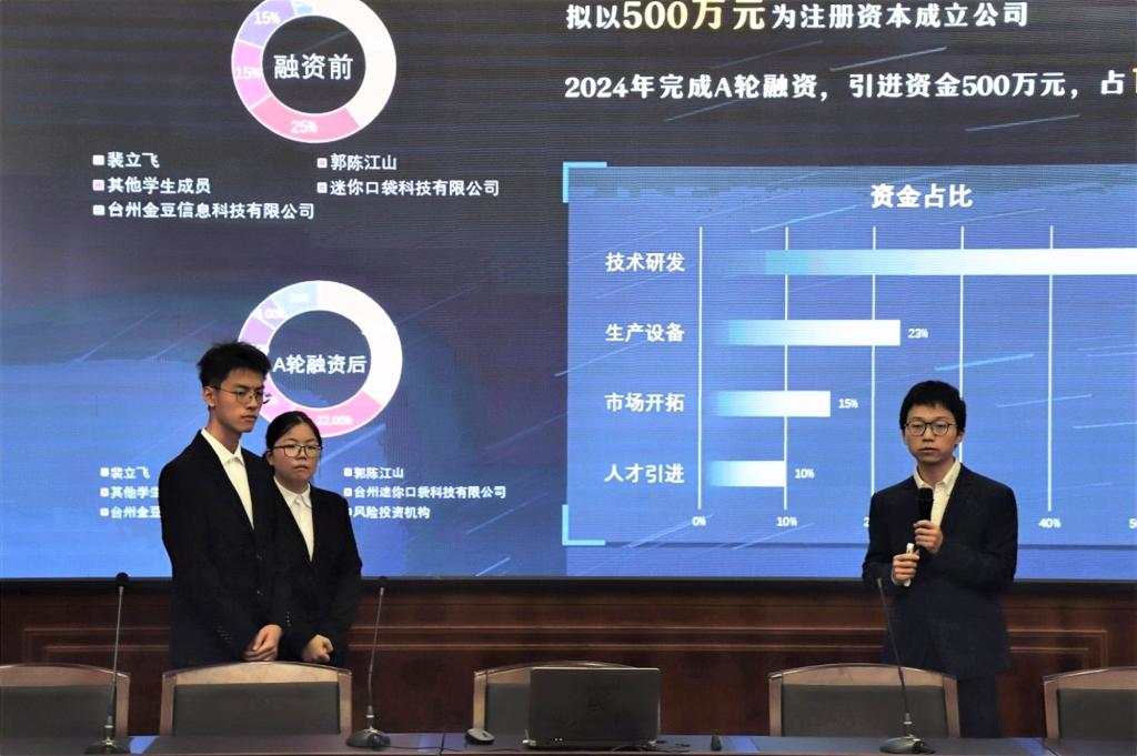 据悉,本次9001cc金沙首页共72支队伍报名参赛,经过专家评委对项目文本打分之后选出10支队伍进行现场答辩,各支队伍通过ppt演示,对项目的可行性、收益情况等方面进行阐述,评委老师现场进行提问并根据他们的创业项目结合现场表现对其进行评分。