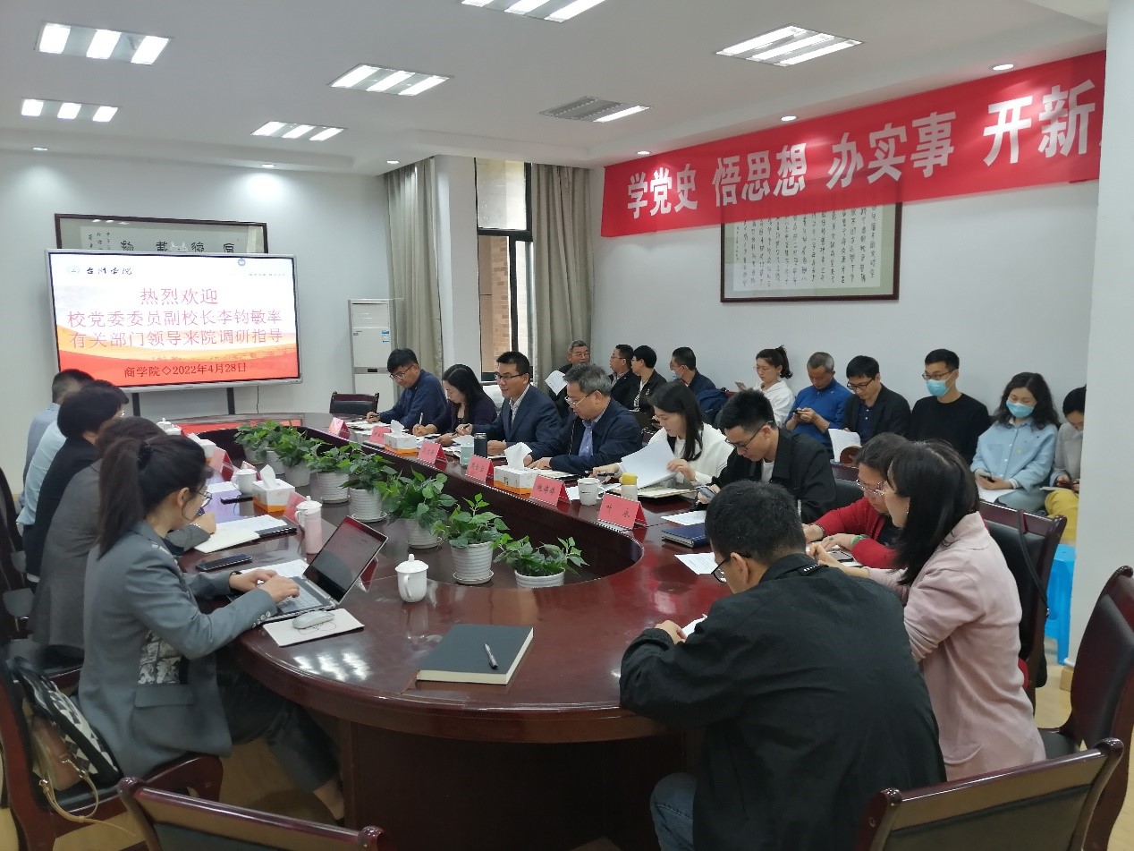 4月28日下午,校党委委员、副校长李钧敏在校研究室主任周良奎、教务处处长金凌虹、国际交流与合作处处长施安全、教务处副处长李银丹陪同下,调研9001cc金沙首页应用型人才培养工作。9001cc金沙首页院长段文奇主持调研会并汇报工作,学院党委书记周全宝、副书记鲍婷婷,学院副院长尹兰香、陈国栋、叶永,各系主任、副主任,教务办老师等参加调研会。