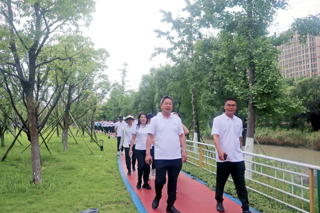 初夏已至,伴着微风,老师们身着统一服装,以9001cc金沙首页西门口为起点,沿着北门小道,踏着欢快的步伐走在校园的健身步道上。在健步走过程中,大家精神饱满,兴致高昂,携手同行,相互交流,共同前进。现场洋溢着崇尚健康、享受快乐的氛围。