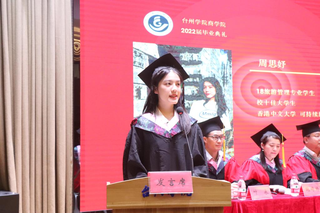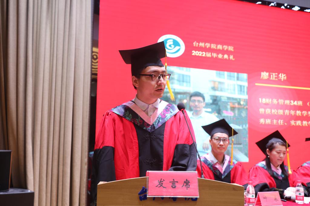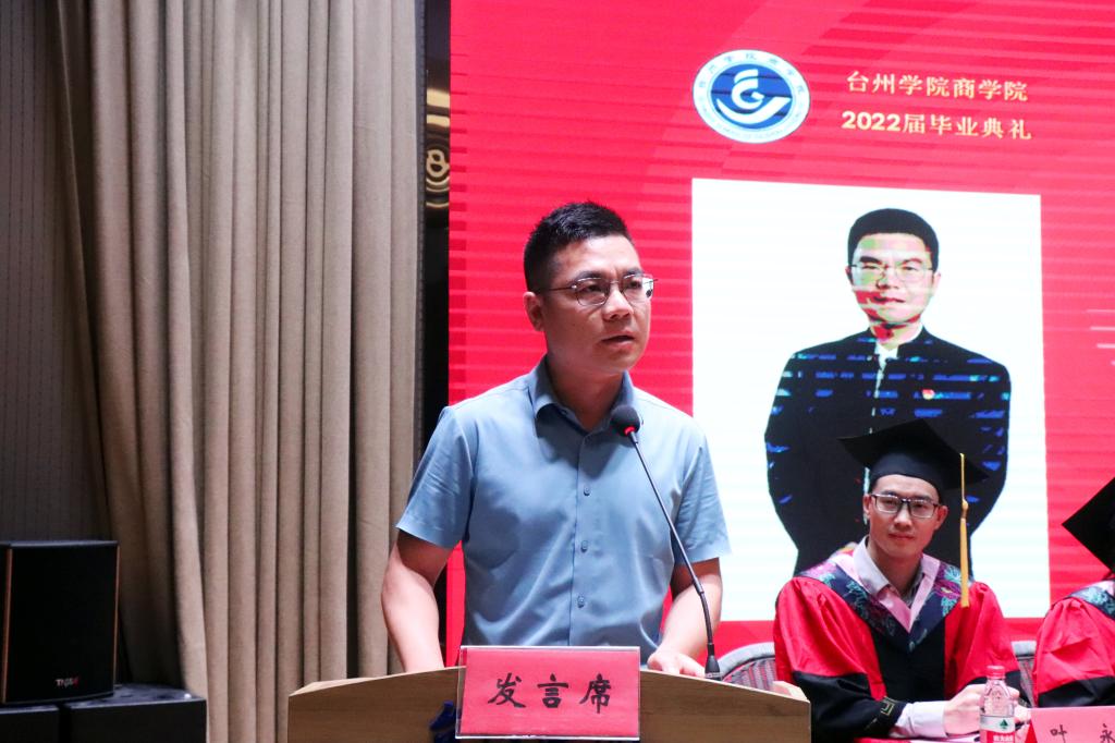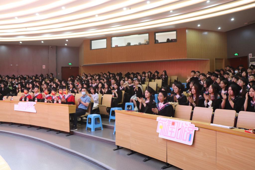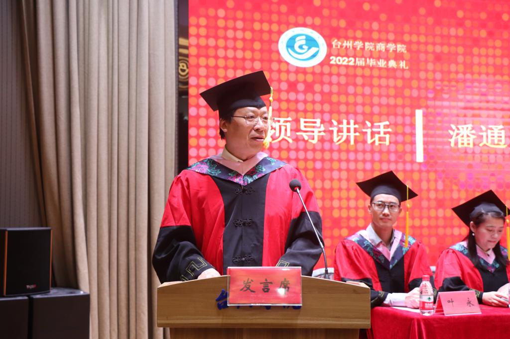 6月15日上午,9001cc金沙首页2022届毕业生典礼在椒江区大学生活动中心举行。校党委副书记潘通天、学院党政领导、各系主任、教师代表、优秀校友代表、毕业班班主任、辅导员及全体毕业生参加。