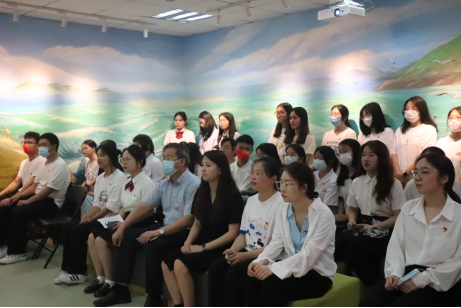 2018级国际经济与贸易魏逸丹代表毕业生党员发言,她回顾了四年大学追梦历程,在学校老师和党组织的培养下自己的历练和成长,号召全体毕业生党员,秉着一股“遇见深林,可以辟成平地,遇见旷野,可以栽种树木,遇见沙漠,可以开掘井泉”的冲劲,把伟大的建党精神融入到今后的学习、工作中,勇敢前行,昂扬奋进。