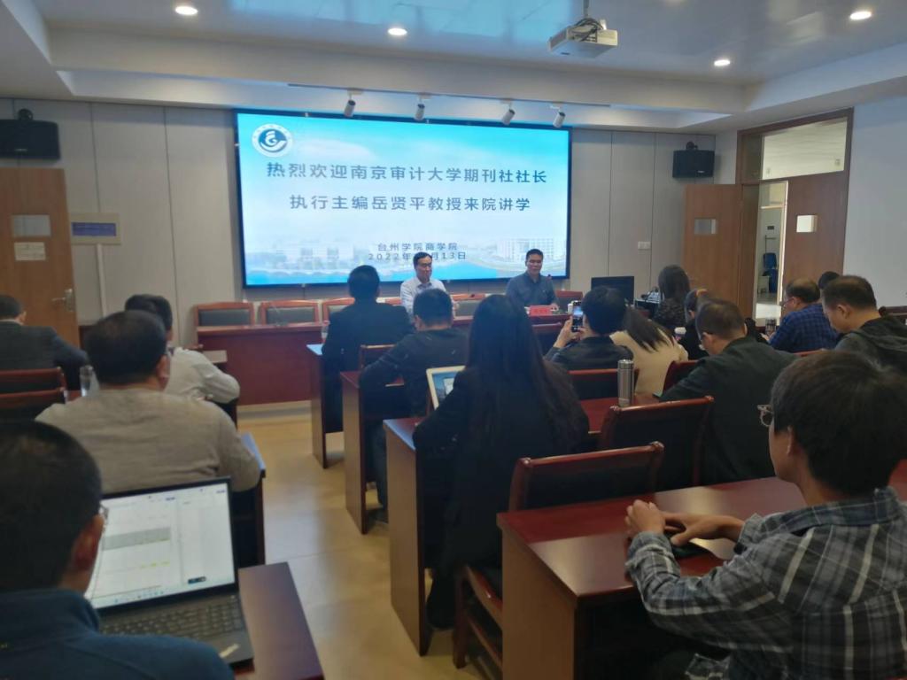 10月13日,南京审计大学期刊社社长、《审计与经济研究》《南京审计大学学报》执行主编岳贤平教授应9001cc金沙首页邀请来校作《学术论文写作规范及投稿注意事项》专题讲座,9001cc金沙首页院长段文奇主持讲座,9001cc金沙首页有关领导、科研骨干教师、联合培养研究生参加讲座。