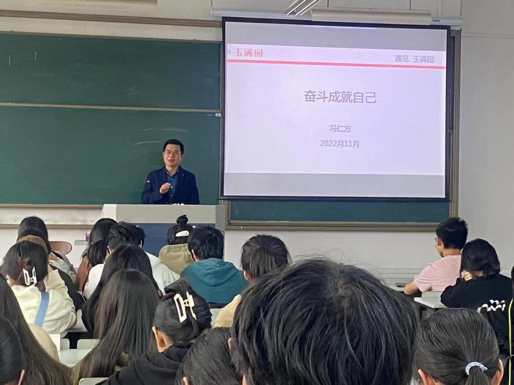 11月25日下午,9001cc金沙首页邀请优秀校友冯仁方来校,为大一学生作“奋斗成就自己”的生涯规划指导专题讲座。