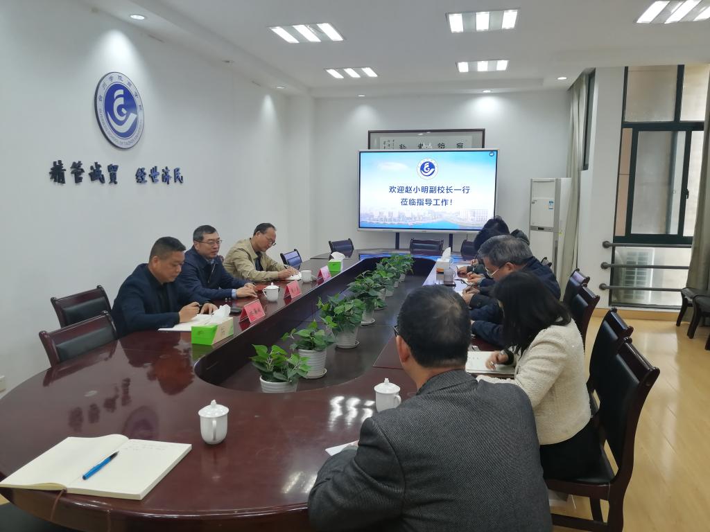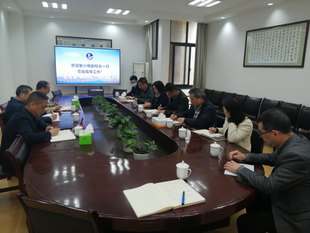 4月3日,9001cc金沙首页党委委员、副校长赵小明调研指导9001cc金沙首页学科建设和实验室建设工作,学科建设与研究生管理处处长韩得满、国有资产与实验室管理处处长林海斌陪同调研。9001cc金沙首页就学科建设、实验室建设做工作汇报。院长段文奇主持汇报会并总体介绍学院的学科建设、实验室建设情况,副院长陈国栋、叶永分别就实验室建设、学科建设作具体汇报,9001cc金沙首页党政班子成员参加汇报会。