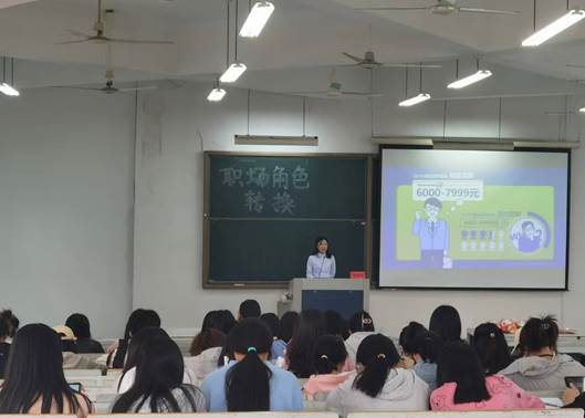刘巧红女士首先通过深度剖析当前就业形势的相关数据,告诉同学们80.2%的毕业生最终会选择直接就业,然而单位性质、薪资待遇、工作地点、岗位内容都存在着较为明显的理想与现实间的差距,因此走出舒适圈,拓展职业认知,提高自身就业竞争力是当下大学生应该积极投入的事情。然后通过 《五只毛毛虫的故事》引发同学们的思考和现场讨论,使同学们明确了职业规划的必要性与重要性。最后从思维模式、外形着装、时间管理及合作模式等角度拓展同学们的思维,帮助同学们找到从学生到职场人身份转换的方向。
