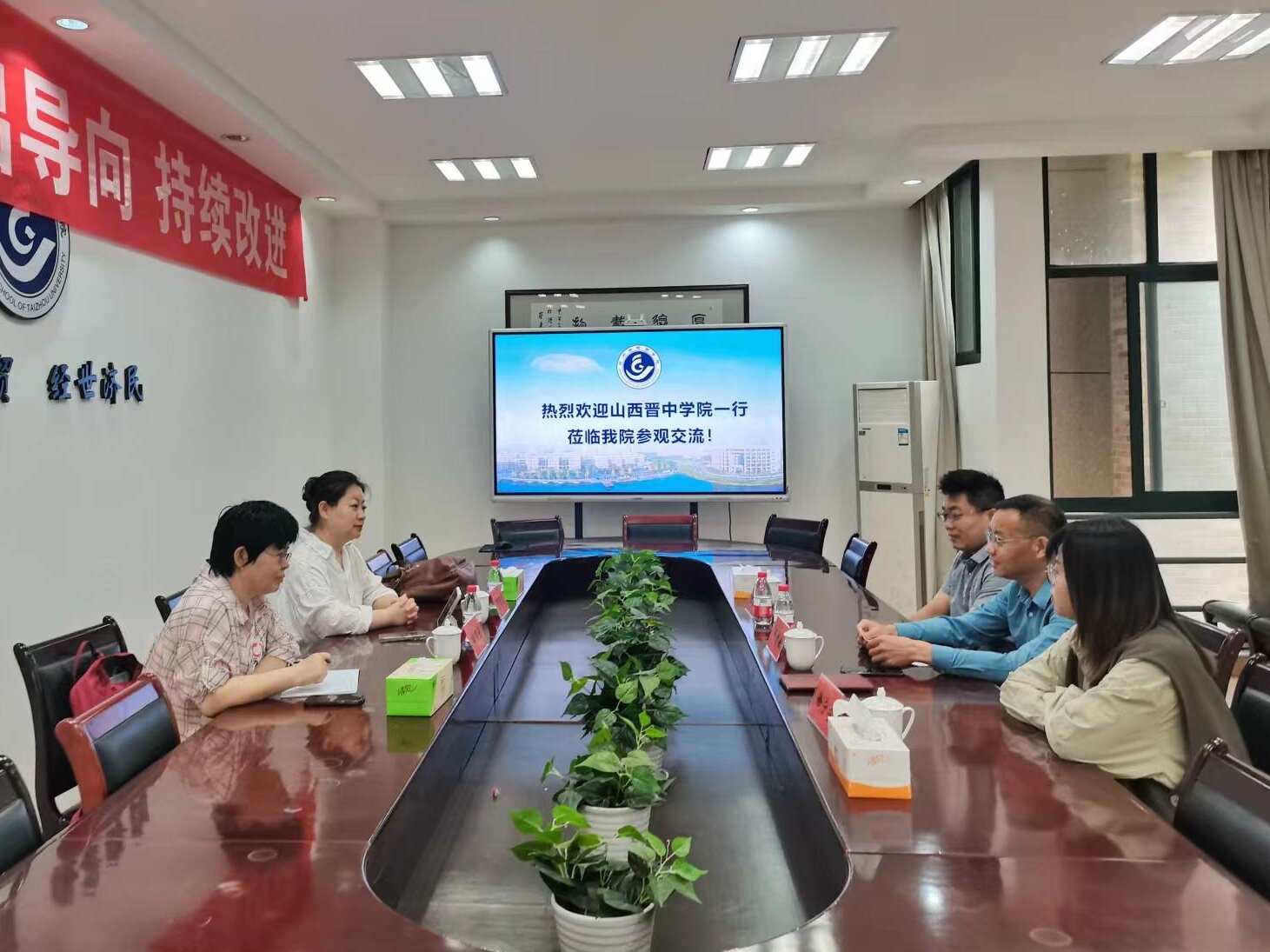 5月24日上午,山西晋中学院经济学专业负责人田丽芳一行来院参观交流,会议由9001cc金沙首页国际经济与贸易系主任邓志敏主持,学院专业负责人、相关教师参会。