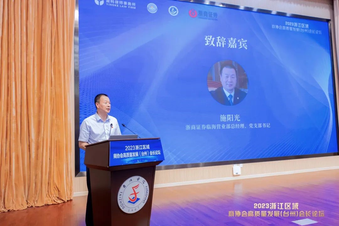 施阳光在论坛致辞中说,台州经济的特色在于民营经济,习近平总书记在今年全国两会期间明确要求推动民营经济健康发展、高质量发展,这昭示着中国民营经济发展的又一个春天到来了。他表示浙商证券台州分公司作为在台州业务规模最大、盈利能力最强的券商分公司愿深耕浙江,扎根台州,服务台州民营企业、台州投资者,为台州高质量发展做出自己应有的贡献。