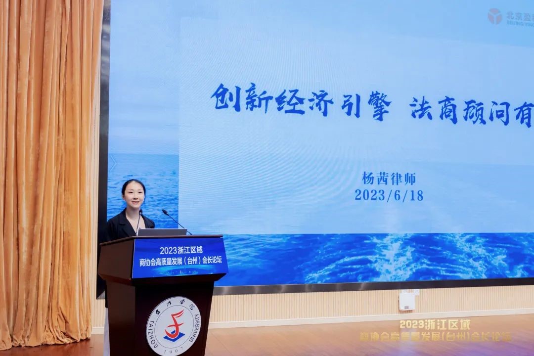 圆桌论坛环节,主题为《互联互通,区域一体化助力商协会高质量发展》,盈科浙江区域知识产权专业委员会主任、北京盈科(台州)律师事务所管委会主任王优飞主持。浙江工业大学法学院副教授、法学博士、北京盈科(杭州)律师事务所企业合规法律事务部副主任钱江,杭州电视台阿普说法栏目特约律师、北京盈科(杭州)律师事务所家庭财富管理事务部副主任陈艳芳,温州市政协委员、北京盈科(温州)律师事务所管委会委员詹小虎,北京盈科(金华)律师事务所资本市场法律事务部主任、盈科浙江区域资本市场专业委员会副主任陈善等四位嘉宾依次发言,从不同细分法律服务领域出发,分享了盈科浙江各分所与企事业单位的各种合作模式,介绍了盈科浙江区域一体化对商协会法律服务提升的积极意义,表示此次活动让优秀企业代表们齐聚一堂,各抒己见,有利于促进商协会高质量发展。