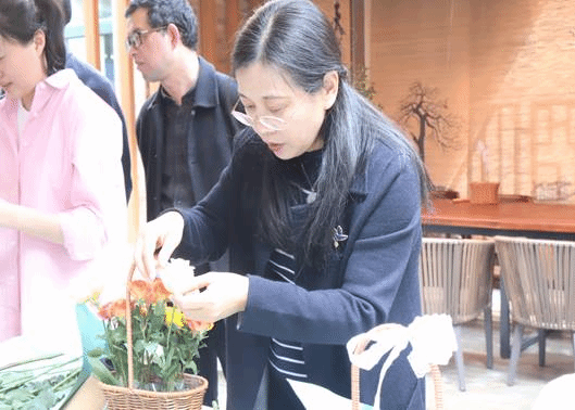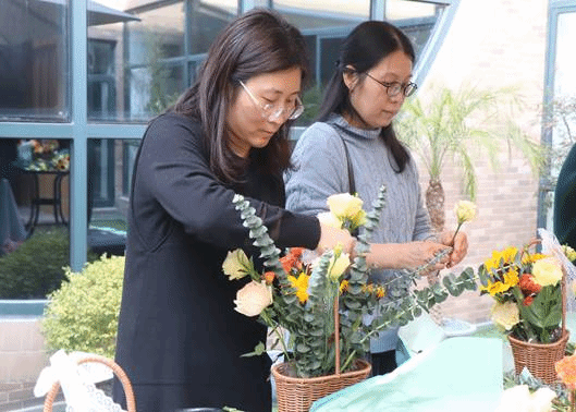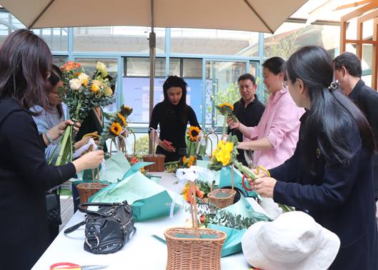 随后在9001cc金沙首页四楼露台开展的插花活动中,花艺师为老师们讲解鲜花种类、插花方法及日常养护。大家循着花香,踏进花草世界,聆听花草絮语,开启花艺之旅。活动现场欢声笑语,其乐融融,花香四溢,处处充满着春的气息。